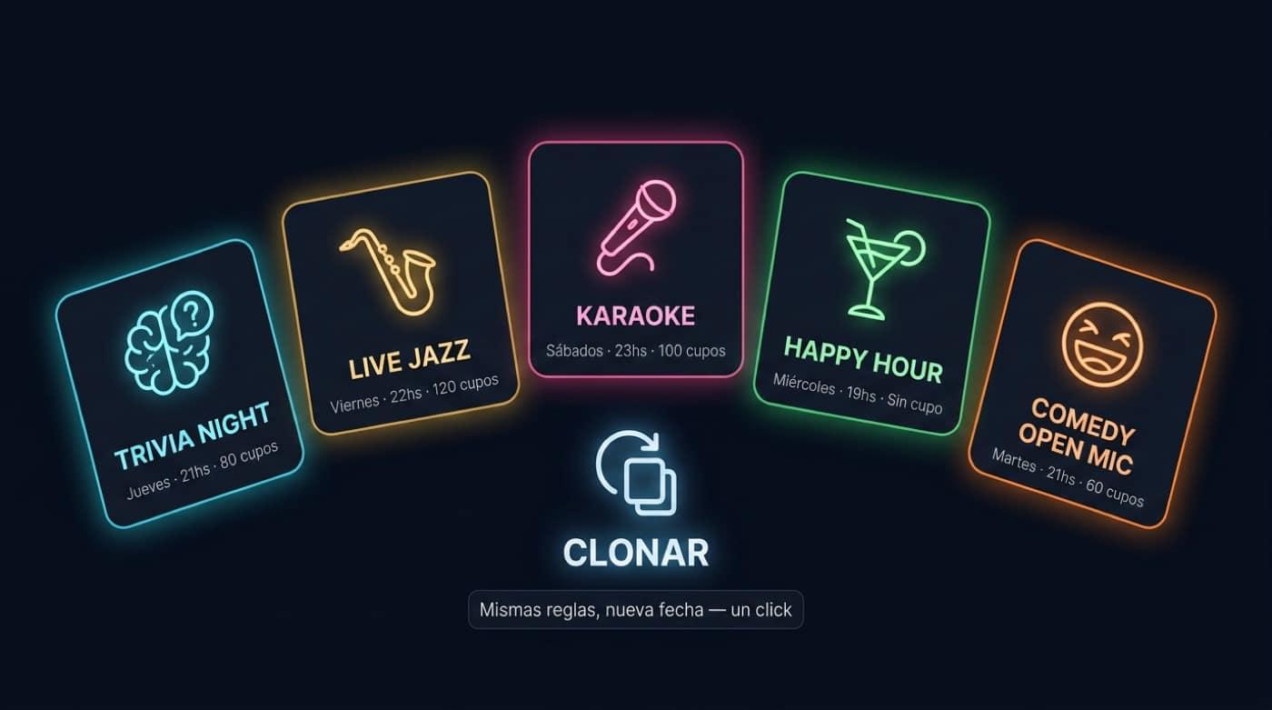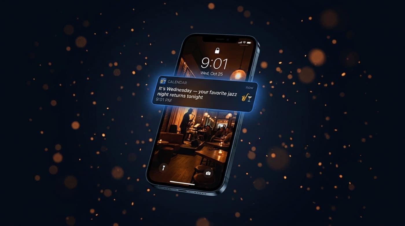 Last-spot alerts, early bird for regulars, and cross-sell between themed nights.