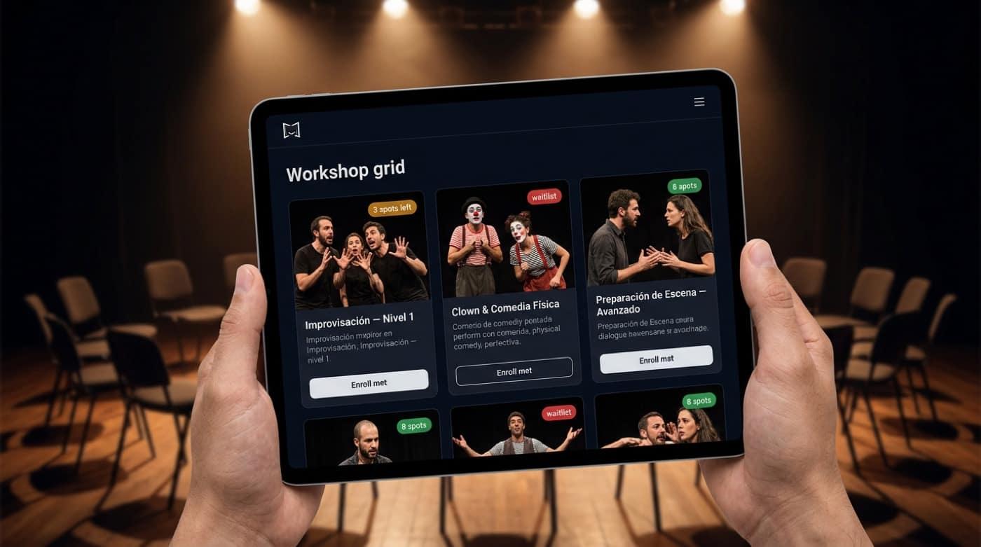 Sell workshops, intensives, and end-of-module showcases with clear caps. Renew enrollments automatically and validate entry with QR — on your domain, with curriculum-grade rigor.