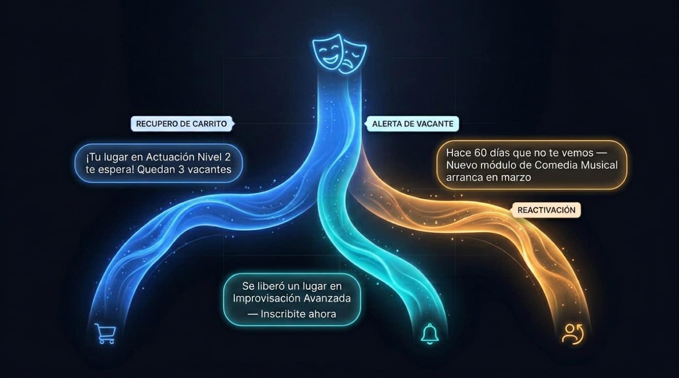 Cart recovery, vacancy alerts, and dormant student reactivation. No manual effort.