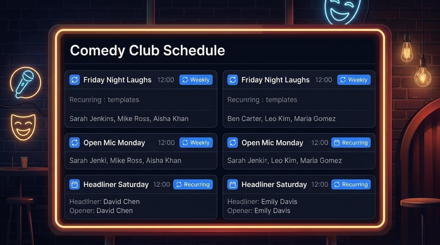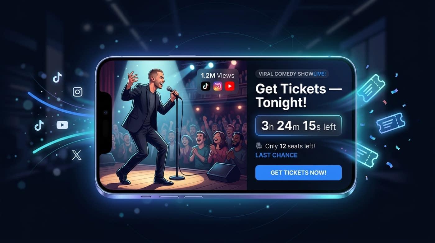 Pensado para open mics, giras cortas, residencias y microteatros de humor donde cada butaca cuenta y el timing del chiste empieza en el link de compra.